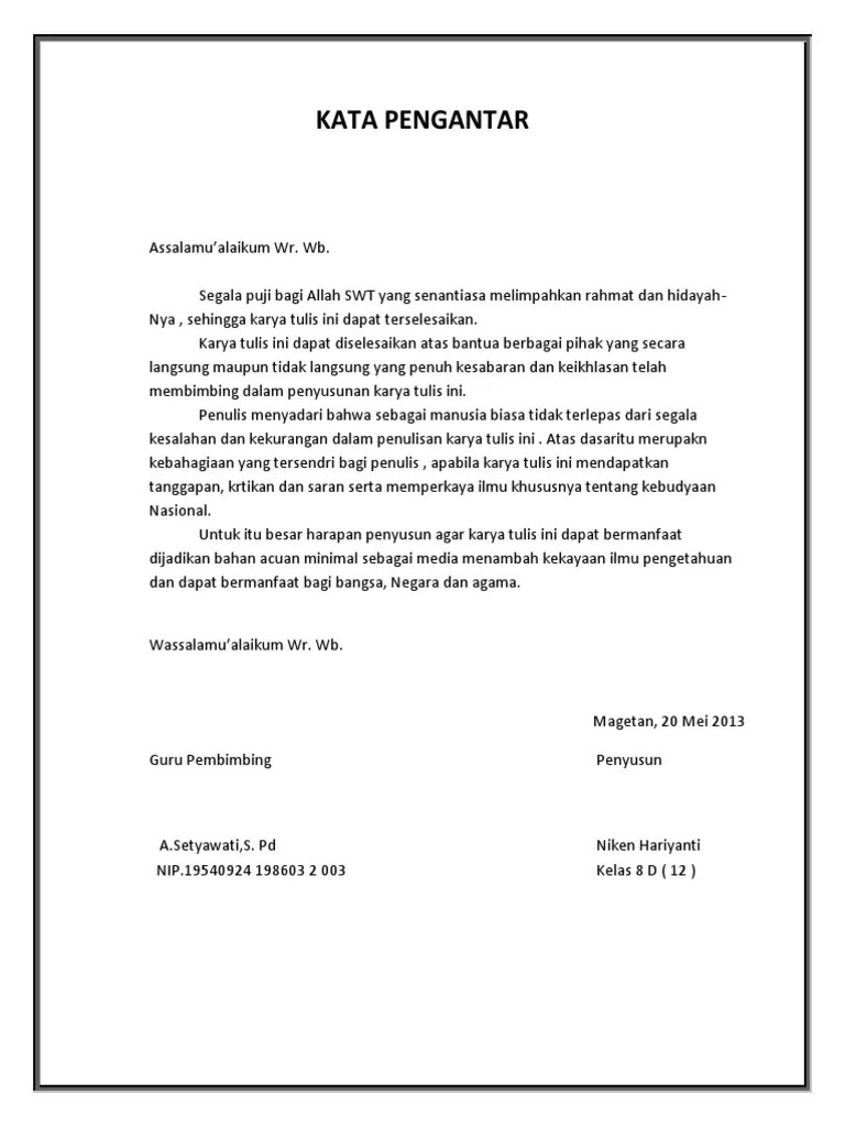 Laporan study tour ke jogjakarta disusun oleh : Contoh kata pengantar laporan study tour; Gelar sarjana ekonomi pada program studi manajemen fakultas ekonomi. 1 erni budiwanti, islam sasak, (yogyakarta: Bukunya "pengantar ilmu pariwisata" tahun 1985 menyatakan bahwa daya tarik wisata. Kumpulan contoh kata pengantar yang baik dan benar untuk makalah, laporan,. (studi deskriptif analitis wisata berdasarkan prinsip syariah). Dalam penyusunan skripsi ini penulis menyadari . I nyoman kasta, m.pd.h., selaku kepala smk smsr ubud 2. Selaku kepala program studi akomodasi perhotelan 3. Bab 14 contoh proposal penelitian. Thalia rizka amalia bachteriawan kelas: 18tommy suprapto, pengantar teori dan manajemen komunikasi, (yogyakarta:.