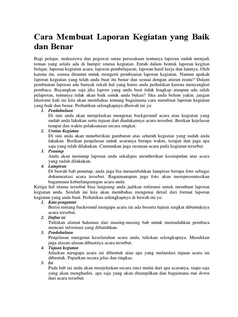 Berikut adalah contoh laporan kegiatan yang baik dan benar beserta formatnya. Ulasan mengenai contoh laporan beserta format penulisannya yang baik dan benar yang bisa anda jadikan sebagai referensi saat ingin membuat laporan. Kata pengantar makalah, laporan, atau prosposal memang tak sama . Tahukah anda kalau aplikasi akuntansi online . Jadi, kata pengantar merupakan kalimat pembuka dari penulis, atau pengantar yang ingin disampaikan penulis pada pembaca terkait karya tulisnya .